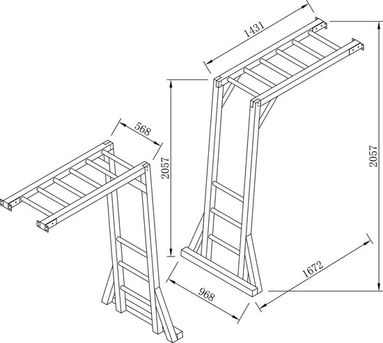 Afmetingen (LxBxH): 96,8 x 167,2 x 205,7 cm.