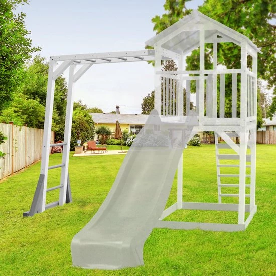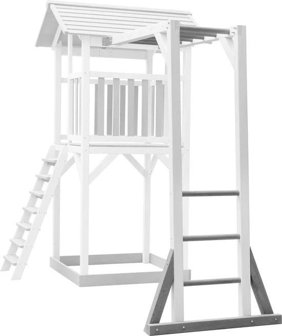 Kinderen zullen het heerlijk vinden om te klimmen en slingeren op het Beach Tower Klimrek Grijs/wit van AXI. Ze kunnen op de basis klimmen en heen en weer slingeren aan de aapstaven. Naast het feit dat het klimrek veel plezier biedt, is het klimmen ook ideaal voor het ontwikkelen van balans, coördinatie en kracht.
