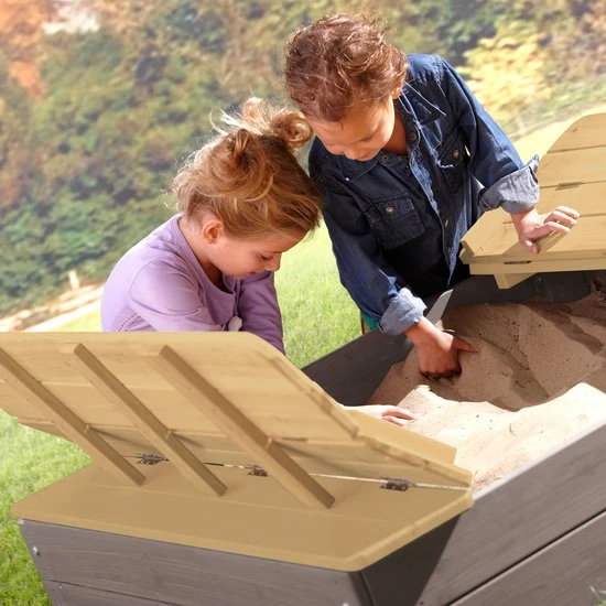 Openen, zitten en spelen in deze leuke Ella XL zandbak Grijs/bruin van AXI; een veelzijdige zandbak met een handig sluitsysteem.