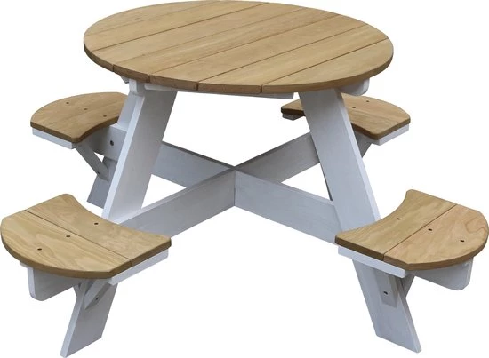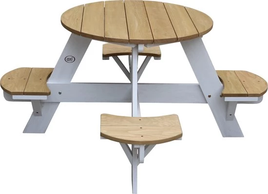 Aan de UFO Picknicktafel Bruin/wit van AXI zitten je kinderen gezellig met vriendjes rondom de tafel. Deze modern gekleurde Picknicktafel past met zijn neutrale bruin/witte kleuren perfect in ieder interieur of tuin. Aan de picknicktafel is voldoende ruimte om met vier kinderen tegelijk te zitten. Zo kunnen ze samen knutselen, tekenen of genieten van wat lekkers. Geschikt voor kinderen van 18 maanden en ouder.