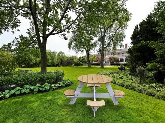 De picknicktafel is gemaakt van FSC 100% Hemlock hout en is daarnaast afkomstig van duurzaam beheerde bossen en daarom ook een milieubewuste keuze. Deze houtsoort splintert niet en is van nature bestand tegen weersinvloeden zoals regen en dus resistent tegen houtrot. De tafel is ook nog eens behandeld met een watergedragen beits, zonder chemicali?n. Je hoeft de UFO Picknicktafel voor gebruik dus niet te behandelen, kinderen kunnen er direct veilig mee spelen.