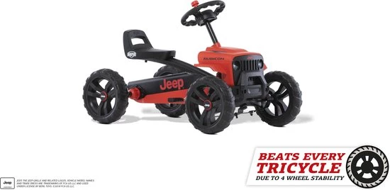 Dankzij de 4 wielen heeft de BERG Buzzy een uitstekende stabiliteit. Omdat de driewielers een wiel minder hebben, zijn deze veel minder stabiel. Het zwaartepunt ligt hierdoor dicht bij de kantellijn, de lijn tussen het voorste en achterste wiel. Scherp of snel door een bocht rijden kan bij een driewieler makkelijk leiden tot het omvallen van de driewieler en passagier. Doordat de Buzzy 4 wielen heeft ligt de kantellijn veel veder naar buiten en verder af van het zwaartepunt. Dit maakt het omvallen van de Buzzy bijna onmogelijk waardoor deze aanzienlijk veiliger is.