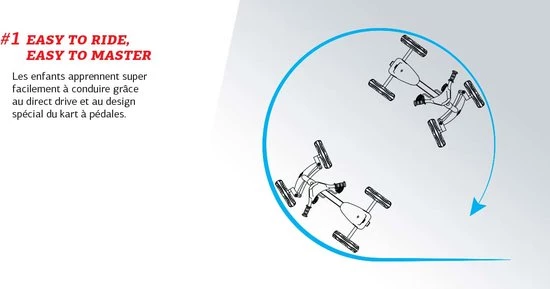 In tegenstelling tot een driewieler zijn de trappers en het stuur los van elkaar te bedienen. Hierdoor bewegen de trappers niet bij het sturen en blijven de voeten ten alle tijden netjes op de trappers. Rijden en sturen hebben dus geen invloed op elkaar wat het speelplezier enorm bevorderd.