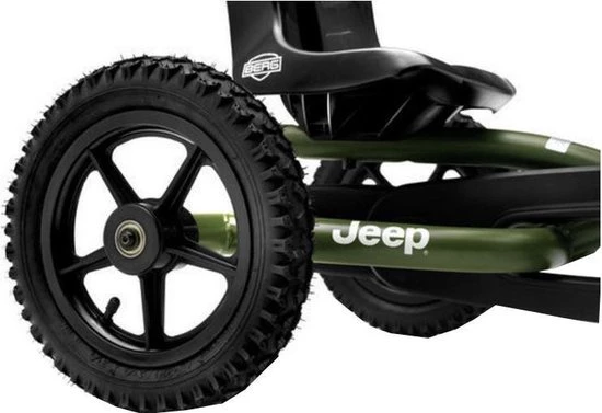 De Buddy ‘Jeep Junior’ is uitgerust met terreinbanden. Hierdoor heeft de skelter op elke ondergrond optimaal grip. Door de verstelbare stoel en het verstelbare stuur heb je daarbij altijd de ideale zit positie en stuur je de skelter gemakkelijk langs alle obstakels.
