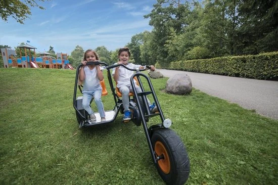 Een skelter met 3 wielen heeft een kleinere draaicirkel dan de skelters op 4 wielen. Hierdoor kan je op de Duo Chopper en Chopper veel scherpere bochten maken!”