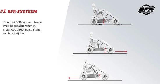 De afkorting BFR staat voor Brake (rem), Freewheel (vrijloop) en Reverse (achteruit rijden). Het BFR-systeem heeft verschillende voordelen. Zo kan je vooruit rijden en direct na stilstand met je skelter achteruit rijden. Dit gaat volledig automatisch, zonder dat je hoeft te schakelen. Door de terugtraprem kan je snel en hard remmen.