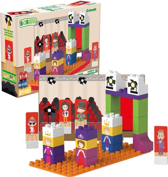 Organiseer je eigen Catwalk en kies de mooiste kleren uit voor jouw modellen met onze nieuwste BiOBUDDI speelset. De leerzame en leuke speelset Catwalk bevat 27 bouwblokken, 5 uitdrukkaartjes met nieuwe personages, zoals de jury leden en onze prachtige modellen, en een gloednieuw achtergrond. Alle kaartjes zijn verwerkt in de 100% recyclebare verpakking! Onze speelgoedblokken zijn speciaal gemaakt door kinderen van 1.5 tot 6 jaar, gemaakt van resten uit de suikerriet plant. De blokken zijn milieuvriendelijk, recyclebaar, duurzaam en ook uitwisselbaar met andere merken. Het helpt kinderen met het ontwikkelen van zowel motorische, cognitieve en creatieve vaardigheden tijdens het spelen. Met BiOBUDDi laat je zien dat je verantwoord omgaat met de planeet en toekomst van de aarde. Daarnaast staat BiOBUDDi garant voor uren veilig en verantwoord speelplezier.