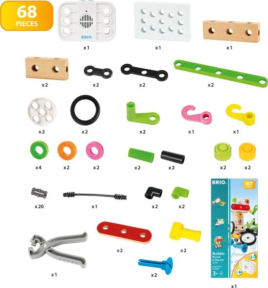 | Verpakkingsinhoud | BRIO, Builder, Record, &, Play, Set, -, 34592, met, 67, onderdelen |