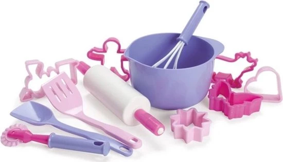 Inhoud: 12-delig (beslagkom, garde, deegroller, spatel, snijwiel, lepel, 6x uitsteekvorm)