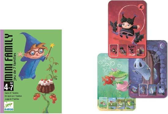 Mini Family van Djeco is een gezellig kaartspelletje van Djeco voor de kleinsten. Het is gebaseerd op het klassieke kwartetspel maar bij dit spel moet je bijzondere families verenigen zoals tovenaars, spoken, ridders, … .