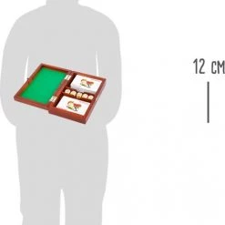 Bestaat uit 28 dominostukjes, verpakt in een stevige doos.