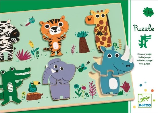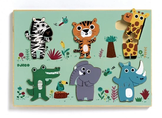 Deze felgekleurde houten puzzel heeft 6 verschillende vriendelijke dieren om een ??plekje voor te vinden. Maar elk dier heeft twee secties, dus je moet niet alleen de juiste gleuf vinden, je moet ook het bijpassende stuk vinden! Geweldig voor het geheugen.