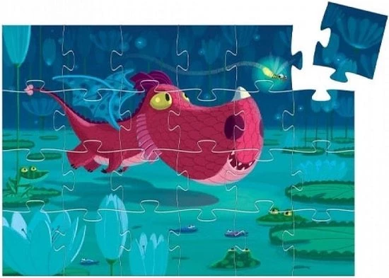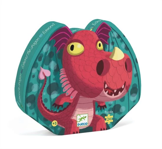 Mooi en een tikkeltje stoer, puzzel Edmond de draak van DJECO. Een doos in vorm van de draakl en op de puzzel zie je hoe hij achter een vuurvliegje aan rent. Een must have voor alle puzzelaars!