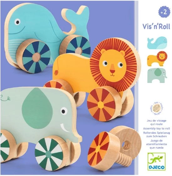 DJECO Vis’n’Roll. Kleur van het product: Multi kleuren, Soort: Figure vehicle, Materiaal: Medium-density fibreboard (MDF), Hout