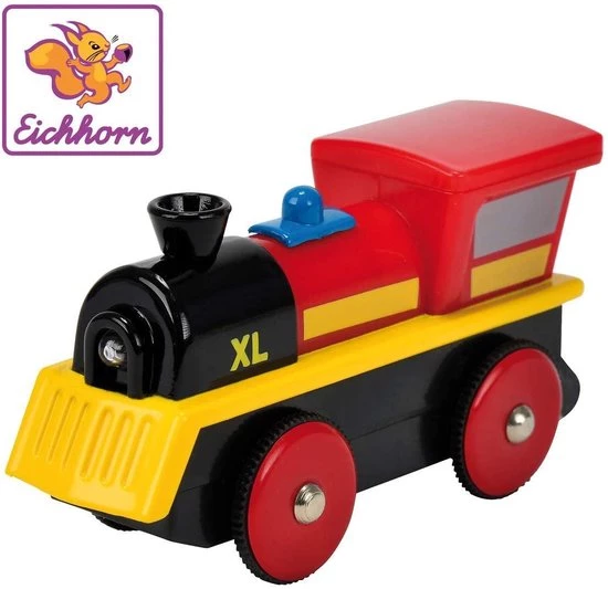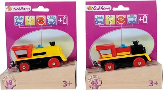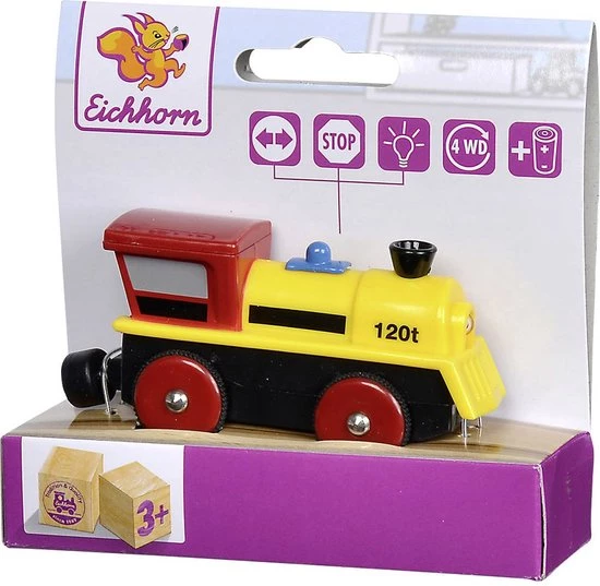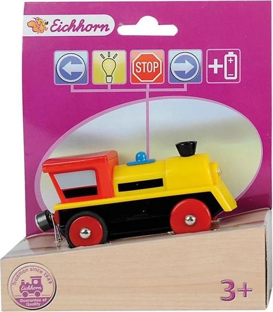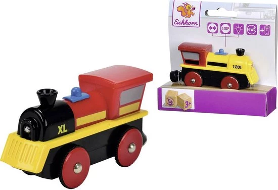 De houten trein van Eichhorn verhoogt je spelplezier: laat de locomotief vooruit of achteruit rijden en stop op tijd aan het perron. Met je licht schijn je mooi waar de trein heen moet rijden. De locomotief is 8 cm lang en kan worden gebruikt op alle Eichhorn spoorwegsystemen in hout. Geschikt voor kinderen vanaf 3 jaar. Batterijen inbegrepen.