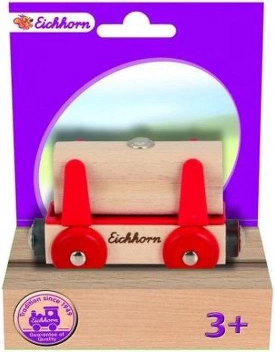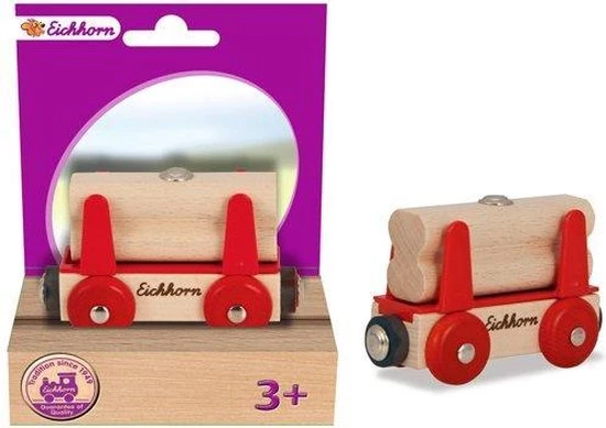 Eichhorn wagon.br /br /wagon met houtlading (2-delig). Erg leuke aanvulling op je trein! Werkt met magneten.br /br /materiaal: houtbr /lengte: 8 cmbr /bijzonderheden: geschikt voor kinderen vanaf 3 jaar.