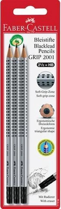 Faber-Castell Faber Castell Potlood FC Grip 2001 HB Met – Gum 3st. Op Blister