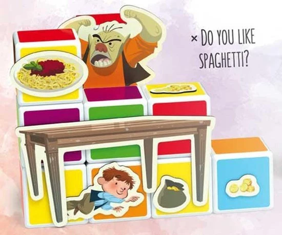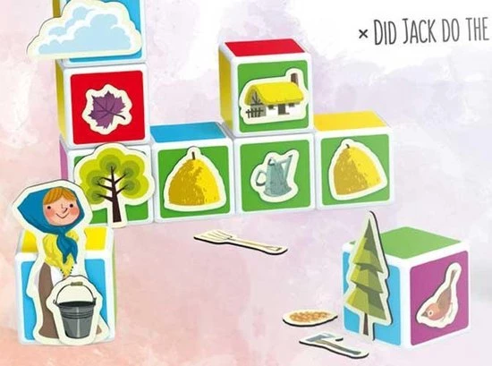 en een boekje met het verhaal, en een selectie geïllustreerde scènes, als voorbeelden van hoe je kunt genieten van het bouwen met de kubussen en clips.