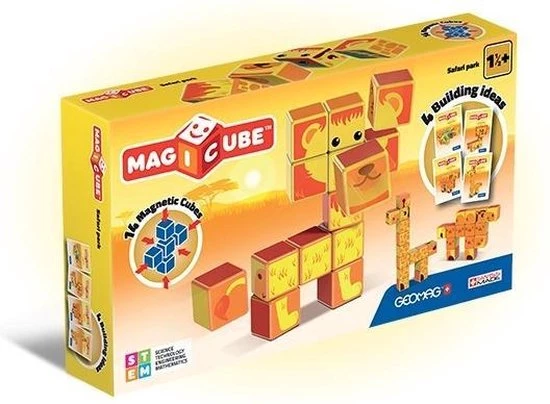 De Geomag MagiCube is speciaal ontwikkeld voor de allerkleinsten. Met deze set kunnen kinderen de klassieke kubus ontdekken. Deze set met dierenthema bestaat uit 14 magnetische blokjes waarmee je 4 verschillende Afrikaanse dieren kunt bouwen.