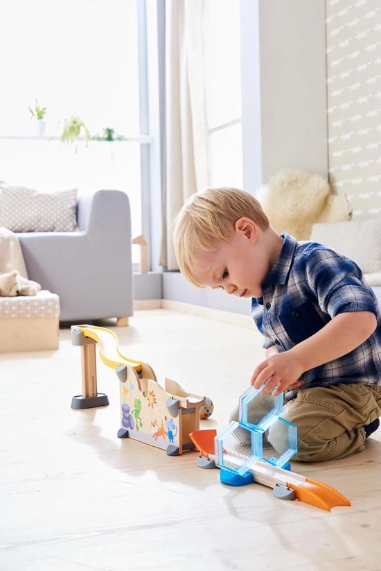 Bouw je eigen speelwereld met de Speelbaan Crashtest van het Duitse merk Haba.
