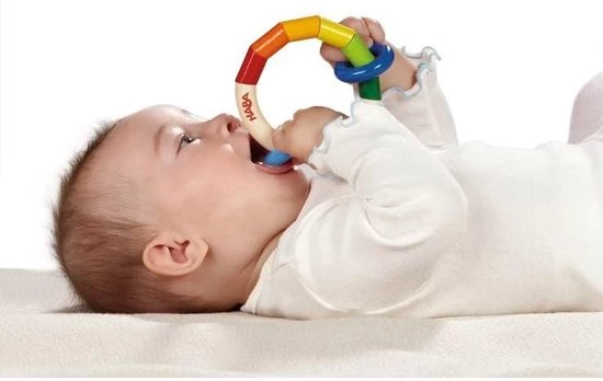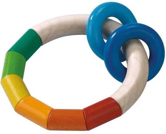Rammelaar bijtring van beukenhout met verschuifbare ringen voor extra speelplezier. Rammelaars van HABA voldoen aan de aller-strengste kwaliteitseisen en zijn absoluut veilig in gebruik!