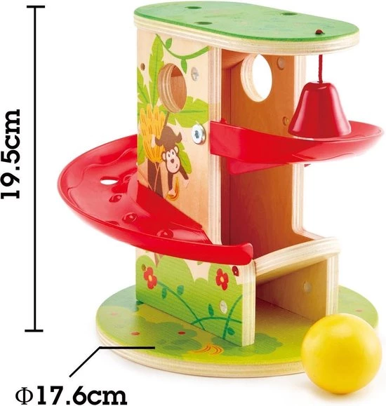 Laat de houten bal rond de boom naar de junglebodem racen. Druk vervolgens op de hendel om helemaal opnieuw te beginnen! Helpt kinderen om hun oog-handco?rdinatie te verbeteren.