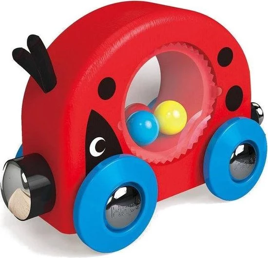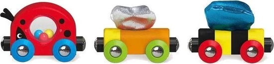 Zoem en fladder naar je volgende bestemming aan boord van deze trein vol insectenvriendjes. De rammelende lieveheersbeestje-wagon stuurt de trein met zijn bij- en vlindervriendje in zijn spoor. Schud de lieveheersbeestje-wagon en het wordt tevens een rammelaar! De bij- en vlinderwagon zijn voorzien van stoffen vleugels om lekker te kreuken.