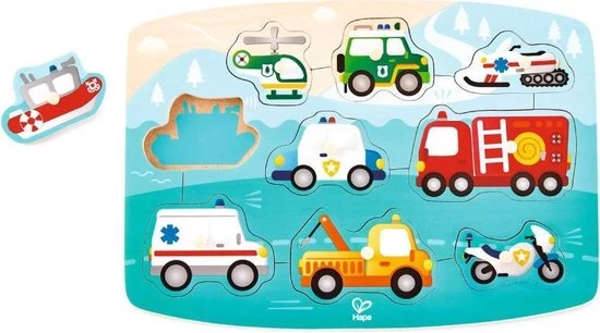 Houd je van voertuigen? Leer meer over de verschillende voertuigen die je tegen kunt komen op de plek van een noodgeval met de kleurrijke en boeiende puzzel.SpeeltipsLos de puzzel op door de vormen of afbeeldingen te paren met de correcte gaten en moedig uw kinderen aan om de namen van de voertuigen te zeggen terwijl ze aan het spelen zijn.Kenmerken