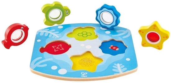 Welke wezens zitten verstopt in de diepe oceaan? Ontdek het met deze vormenpuzzel van Hape. Maak de puzzel compleet en ontdek de kleine geheimen van de oceaandieren terwijl je de puzzel compleet maakt. Elk puzzelstukje heeft een vergrootglas in zich om de oceaan grondig te bestuderen.