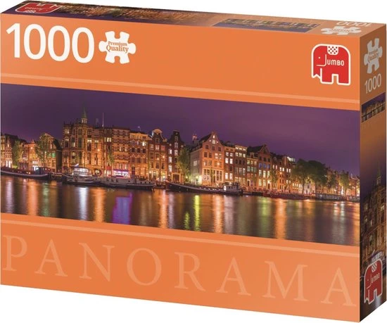 Bewonder de skyline van Amsterdam in panorama met deze Premium Quality puzzel van 1000 stukjes.