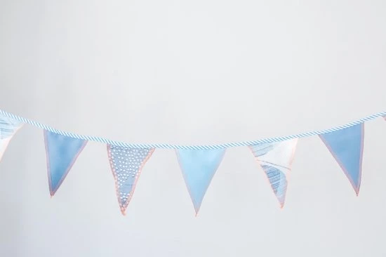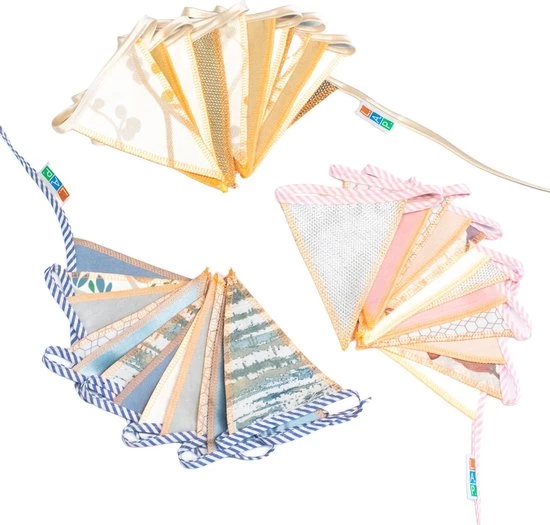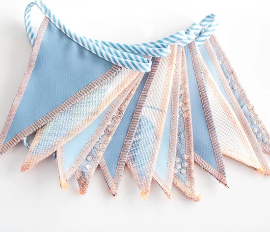 Doordat we met restmaterialen werken kan de door jou ontvangen vlaggenlijn wel iets anders zijn dan het product op de voorbeelden.