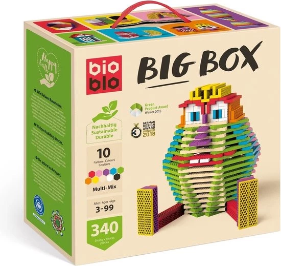 In dit set van BioBlo zitten maar liefst 340 bouwstenen!. De BioBlo bouwstenen zijn licht van gewicht, vochtbestendig en geven niet af. Je kunt er allerlei creaties mee maken. In dit bouwset zit een beschrijving hoe je de vogel zoals op de doos is afgebeeld kunt maken. Ook worden er in het constructieboekje andere technieken en voorbeelden weergegeven.