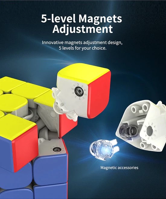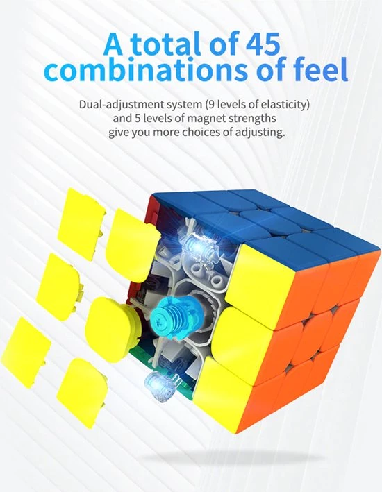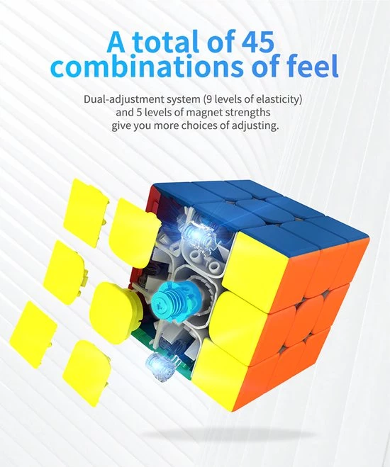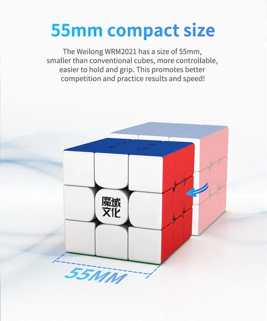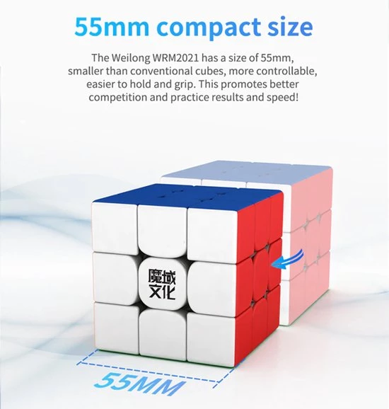 De MoYu WeiLong WR M 2021 3?3 is MoYu?s 2021 vlaggenschip. Het is een update van de vorige WR M 2020 en MoYu slaagt er op de een of andere manier in om meer functies toe te passen voor minder geld. De 2021 versie biedt gebruiksvriendelijke magneten met instelbare sterktes (5) en hetzelfde systeem met dubbele aanpassing dat we allemaal kennen. De MoYu WeiLong WR M 2021 heeft een compacter formaat (55 mm) ten opzichte van de vorige versie, samen met het soepelere, unieke draaigevoel.