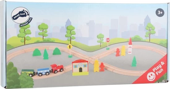 Deze treinset is geweldig voor beginnende treinconducteurs. Bouw de treinrails en speel met de trein en houten figuren. De rails kan uit worden gebreid met andere stukken rails van Small Foot.