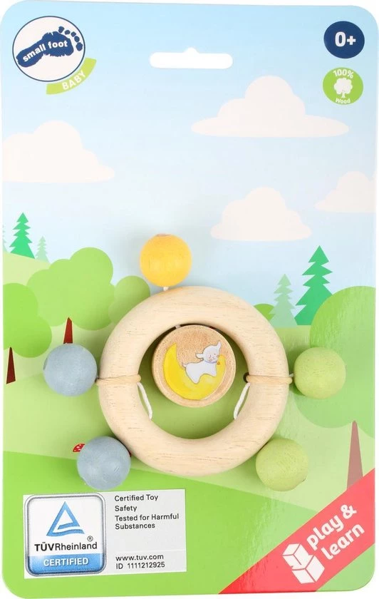Deze vrolijke speelring van Small Foot trekt snel de aandacht van de allerkleinsten. Met verrassende vormen en speelse kleuren is het een genot voor kind en ouder. Gemaakt van duurzame materialen waardoor het speelgoed niet alleen leuk maar ook veilig is.