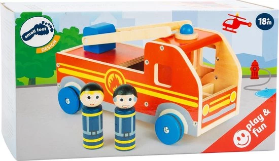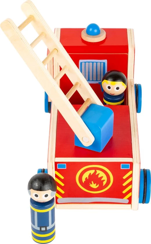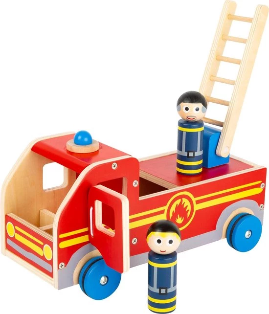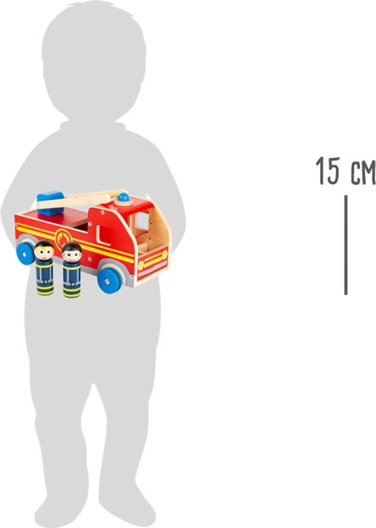 Wee woo, de brandweer is hier! In deze extra grote brandweerauto zitten twee houten brandweerlieden comfortabel in hun aparte bestuurderscabines. Dit speelgoedvoertuig is perfect geschikt voor kleine kinderhanden en biedt veel opbergruimte in het interieur. Welk binnenbrandje moet worden geblust?