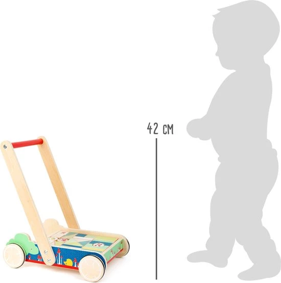 Laat jouw kindje de eerste stapjes zetten met deze houten loopwagen van Small Foot. Als kinderen leren lopen, hebben ze graag wat steun. Het vrolijke design en de royale opbergruimte met blokken helpen de beginnende lopers bij hun eerste stapjes. De houten bouwstenen zorgen voor urenlang speelplezier na de korte wandeling. Niets staat die eerste stappen meer in de weg!