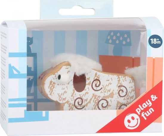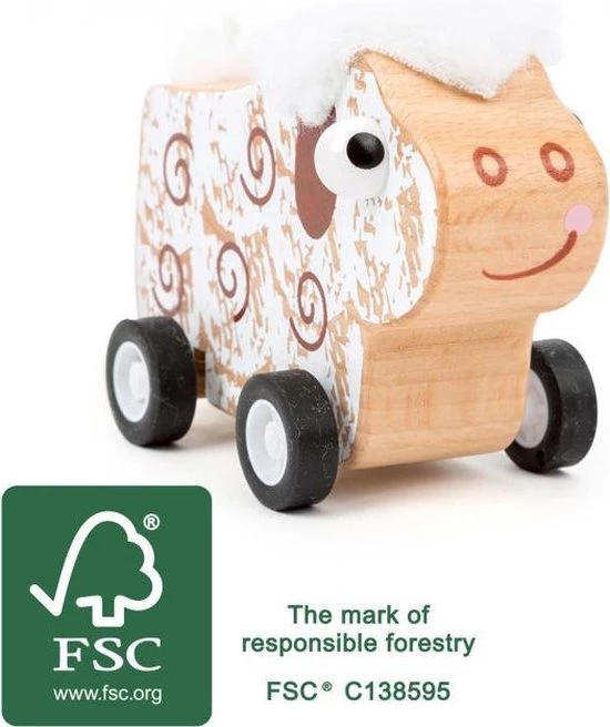 Dit schattige schaapje is gemaakt van hout uit volledig verantwoord beheerde bossen. Dit schaapje rijdt vrolijk door de kinderkamer op vier rubberen wielen en zorgt voor spannende races. Wie is de snelste?