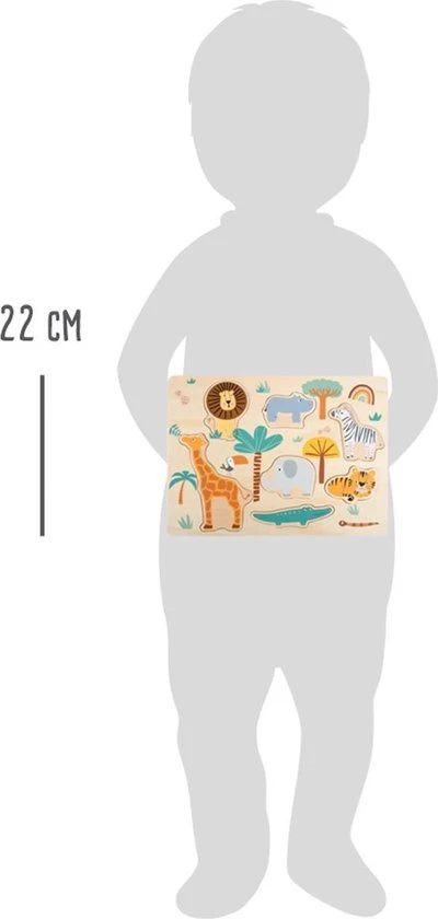 Met deze houten puzzel is het de bedoeling om de zeven savannedieren op de juiste plek te zetten. Dit traint niet alleen de motoriek en het vormen van begrip bij kinderen, maar vergt ook concentratie en geduld van hen. Deze puzzel heeft leuke en vrolijke safarimotieven in trendy kleuren. Met deze bijzondere puzzel is een uitstapje naar het rijk van de giraf, zebra, olifant en hun vriendjes twee keer zo leuk!