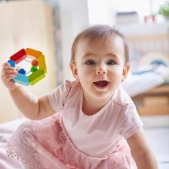 - Het is een lastige taak die fijne motoriek en probleemoplossend vermogen traint! Door de afgeronde basis kan de voltooide stapeltoren als een leuke beloning heen en weer wiebelen.