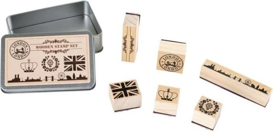 Vrienden van de Britse Eilanden zullen van deze hout zegel set echt inspireerd zijn. Het is een grappige cadeau of hebbedingetjes in een schattige blik! Typische motieven zoals Tower Bridge, de kroonjuwelen, de vlag “Union Jack” of simpelweg de silhouet van de metropool aan de Theems laten zich makkelijk overal stempelen.