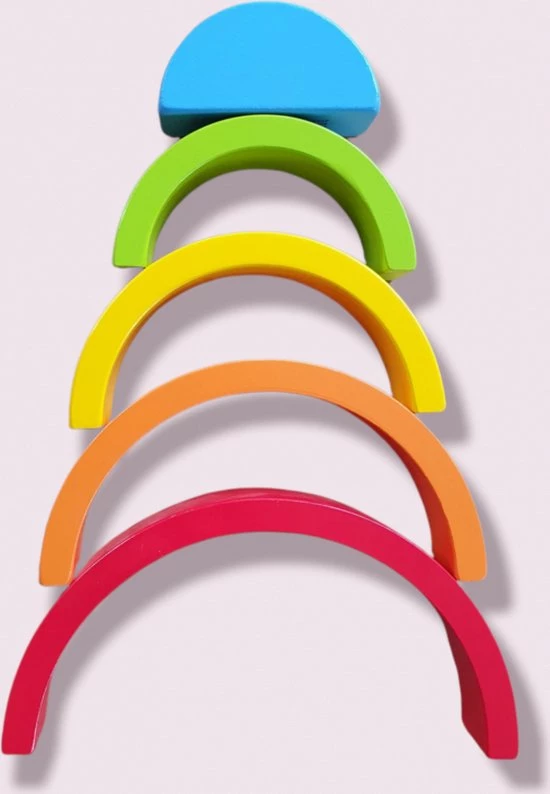 Kun je ze in de juiste volgorde samenvoegen? Deze felgekleurde halve cirkel van stabiel hout is een gemakkelijke introductie in de wereld van motoriek. Met zijn op water gebaseerde en speekselbestendige verven, biedt het niet alleen een kans om kleuren en vormen te leren, maar ook ruimtelijk bewustzijn, behendigheid en oog-handco?rdinatie bij jonge kinderen. Een geweldig leerstuk voor thuis.