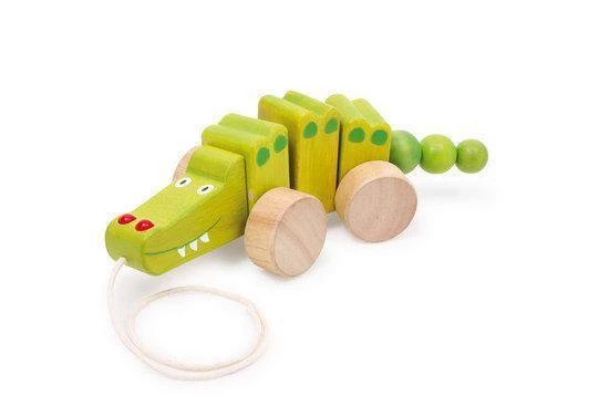 Tijdens het gebruik van het touw wiebelt deze grappige krokodil die waardevol gemaakt is van gekleurd gevernist beukenhout achter je aan!