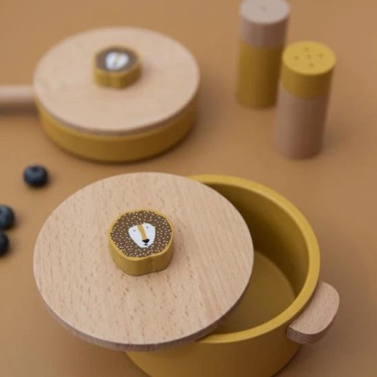 Laten we koken! Met deze leuke set van Trixie beleeft je kind urenlang speelplezier met het bereiden van de gekste soepen en smakelijkste diners. De set bestaat uit een pot, een pan, een peper- en zoutstel, lepel en vork. Alleen nog wat verbeelding toevoegen en je tovert de lekkerste gerechten op tafel! De kookset is gemaakt van 100% FSC ? gecertificeerd hout. Alle verven zijn op waterbasis en veilig voor baby’s.
